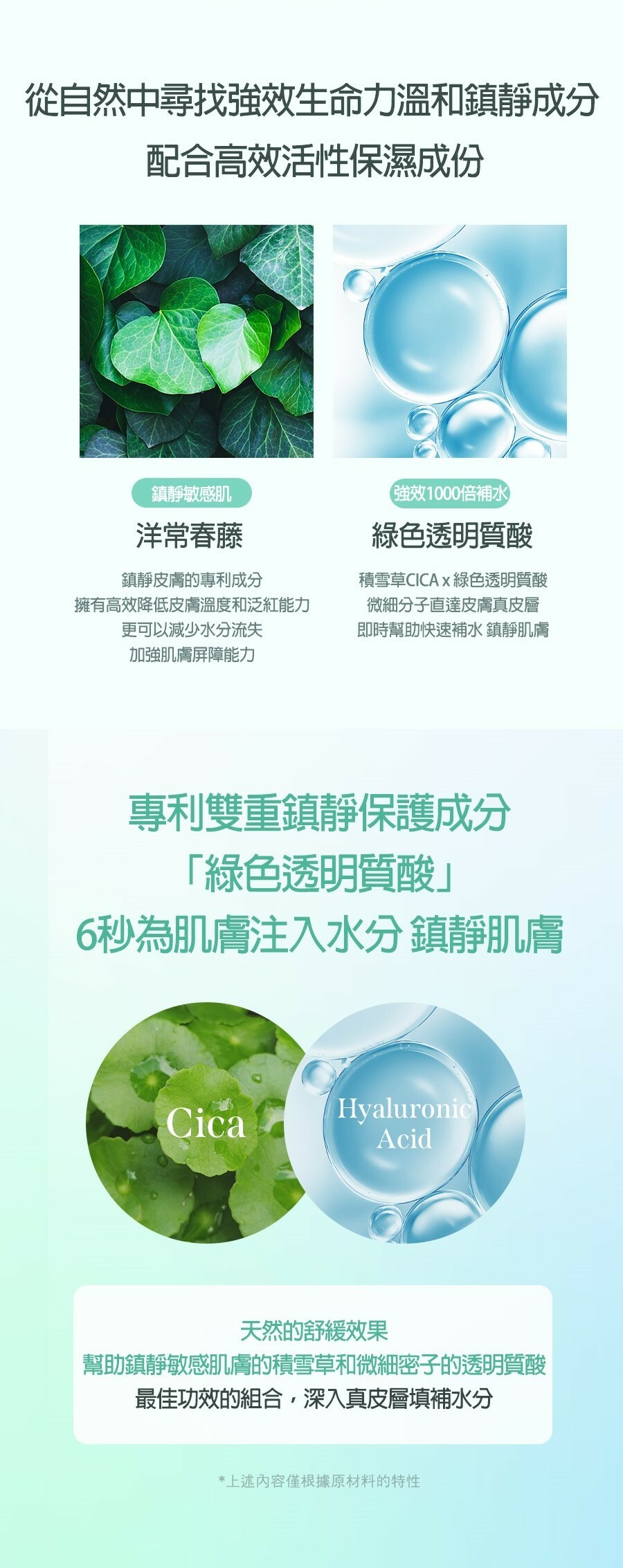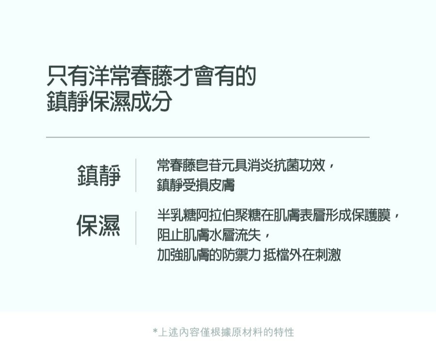 ✅【洋常春藤+綠色玻尿酸】控制水油平衡保濕補水同時減少油脂分泌