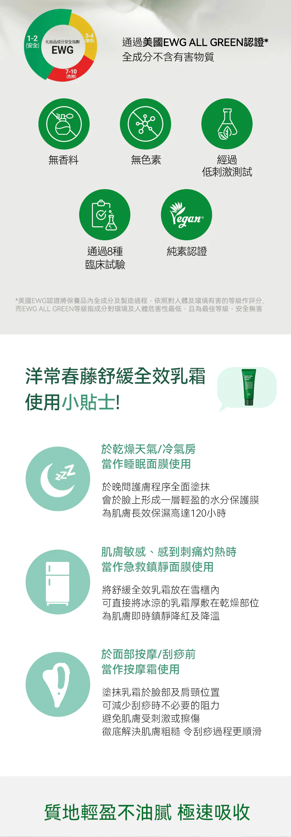 ✅【零剌激 敏感肌適用】所有成份均獲美國EWG安全ALL GREEN認證